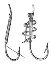 Keywords: Meyers b1 s0566 b6.png de links angewundener Haken rechts Haken mit Plättchen Meyers b1 s0566 jpg ca 1885 author PD-Meyers Fishing hooks Images from Meyers Konversationslexikon 4th edition - text figures