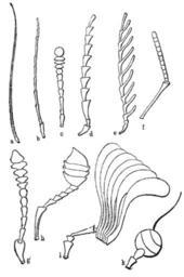 | Keywords: Meyers b1 s0624 b1.png de Antennen von Insekten a borstige “ b fädige “ c schnurförmige “ d gesägte “ e gekämmte “ f gebrochene “ g keulige “ h geknöpfte “ i durchblätterte “ k mit Borsten versehene Meyers b1 s0624 jpg ca 1885 author PD-Meyers Drawings of insects Images from Meyers Konversationslexikon 4th edition - text figures |
