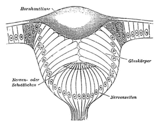 Keywords: Meyers b2 s0073 b2.png de Punktauge einer Käferlarve Meyers b2 s0073 jpg ca 1885 author PD-Meyers Anatomy of the eyes of insects Images from Meyers Konversationslexikon 4th edition - text figures