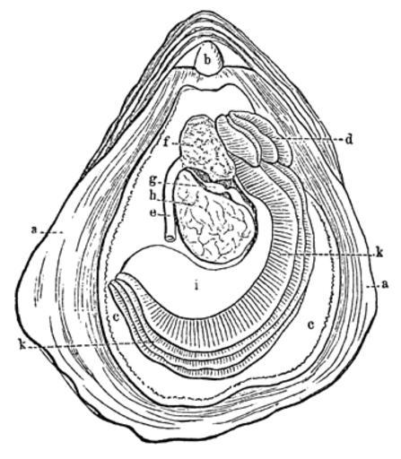 | Keywords: Meyers b2 s0140 b1.png de Auster nach Entfernung des rechten Mantelblattes a Schale b Schloß c linke Mantelhälfte d vier Mundlappen e Afterdarm f Leber g Herz h Schließmuskel i Eingeweidesack k vier Kiemenblätter Meyers b2 s0140 jpg ca 1885 author PD-Meyers Bivalvia anatomy Images from Meyers Konversationslexikon 4th edition - text figures |