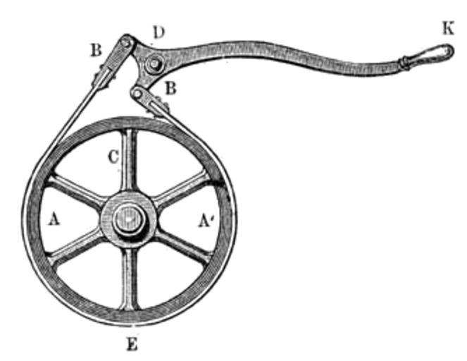 Keywords: Meyers b3 s0392 b2.png de Bandbremse Meyers b3 s0392 jpg ca 1885 author PD-Meyers Images from Meyers Konversationslexikon 4th edition - text figures Brakes