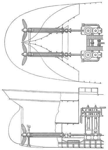 | Keywords: Meyers b4 s0482 b1.png  de Zwillingsschraubendampfer kleinster Art oben Grundriß unten Längsschnitt Meyers b4 s0482 jpg ca 1885 author PD-Meyers Images from Meyers Konversationslexikon 4th edition - text figures Steam-powered watercraft Propeller driven transport vehicles Cross sections of ships |