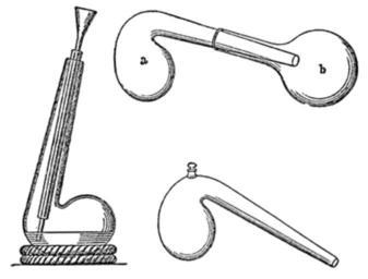 | Keywords: Meyers b4 s0717 b1.png de Destillationsapparate links Füllen der Retorte rechts oben Retorte und Kolben unten Tubulierte Retorte Meyers b4 s0717 jpg ca 1885 author PD-Meyers Images from Meyers Konversationslexikon 4th edition - text figures Retort |