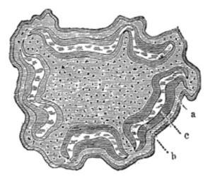| Keywords: Meyers b6 s0051 b1.png de Querschnitt eines baumartigen Farnstammes ab Sklerenchym; c Fibrovasalstränge Meyers b6 s0051 jpg ca 1885 author PD-Meyers Images from Meyers Konversationslexikon 4th edition - text figures Unidentified Pteridophyta |