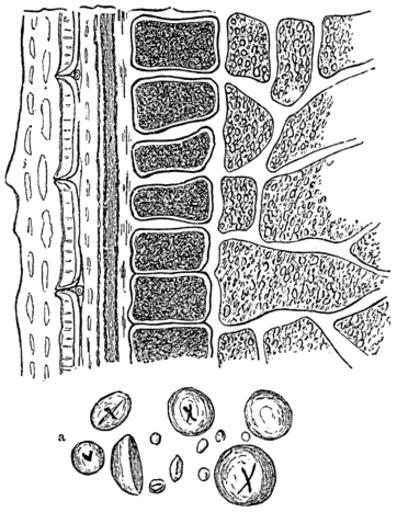 Keywords: Meyers b7 s0264 b2.png de Ansicht eines Querschnitts eines Weizenkorns in 500facher Vergrößerung “ a Stärkekörner Meyers b7 s0264 jpg ca 1885 author PD-Meyers Images from Meyers Konversationslexikon 4th edition - text figures Triticum