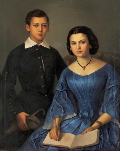 | Keywords: Mezey József Abonyi testvérek 1859.jpg Artwork Creator József Mezey 1859 Oil on canvas Size cm 75 93 Private collection object history exhibition history credit line bottom left Mezei József 1859 LangSwitch On the reverse Hátoldalon žAbonyi Vilma 17 éves korában Abonyi Emil 12 éves korában Testvérek Abonyi István és Buday Amália gyermekei 1859 accession number http //polgar-galeria hu/hu/ Polgár Galéria http //www polgar-galeria hu/pdf/auk88 pdf 88 Tavaszi Mûvészeti Aukció No 66 p 31 PD-old-100 József Mezey 1859 paintings |