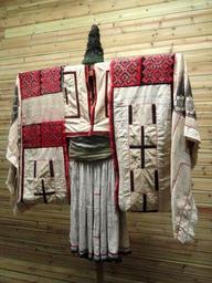| Keywords: Miao woman brocade dress - Yunnan Nationalities Museum - DSC04277.JPG Miao woman brocade dress Clothing exhibited in the Yunnan Nationalities Museum Kunming Yunnan China I took this photograph 2011-08-13 02 21 26 Daderot Public domain Clothing in the Yunnan Nationalities Museum Miao clothing |