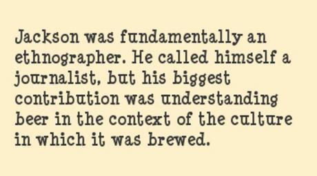 | Keywords: beer michael jackson michaeljackson appreciation text Michael Jackson [1942-2007] "was fundamentally an ethnographer. He wasn't a brewer and he wasn't an historian. He called himself a journalist, but his biggest contribution was understanding beer in the context of the culture in which it was brewed. He might have approached beer from the sensory perspective, as much wine writing does, or he could have gone out to breweries and described the beer they made, like a simple journalist. Instead, he did this: [...] Jackson situated beer in a place. He demonstrated how it was an expression of the culture of the people who made it. [...] The thing that fueled the American brewing revival was how people fell in love with beer, and Jackson's culture-rich writing was one of the main vectors of that romance. [...] Jackson got some things wrong in 1977. This indicates not shoddy work, but old work. What's remarkable is, after forty years, how much still stands up." —Jeff Alworth: at Beervana 30 May 2016. Michael Jackson [1942-2007] "was fundamentally an ethnographer. He wasn't a brewer and he wasn't an historian. He called himself a journalist, but his biggest contribution was understanding beer in the context of the culture in which it was brewed. He might have approached beer from the sensory perspective, as much wine writing does, or he could have gone out to breweries and described the beer they made, like a simple journalist. Instead, he did this: [...] Jackson situated beer in a place. He demonstrated how it was an expression of the culture of the people who made it. [...] The thing that fueled the American brewing revival was how people fell in love with beer, and Jackson's culture-rich writing was one of the main vectors of that romance. [...] Jackson got some things wrong in 1977. This indicates not shoddy work, but old work. What's remarkable is, after forty years, how much still stands up." —Jeff Alworth: at Beervana 30 May 2016. |