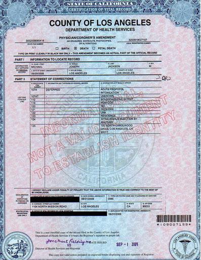Keywords: Michael Jackson death certificate amendment form.jpg Michael Jackson Death Certificate Amendment Because an actual amended certificate copy is not available http //agnetablt221 sourceforge net/cause-of-michael-jacksons-death-facts php other versions PD-CAGov Original upload log en wikipedia FastilyClone MTC page en wikipedia Michael+Jackson+death+certificate+amendment+form jpg wikitable - 2012-11-25 17 00 25 800× 1032× ShawnIsHere Michael Jackson Death Certificate Amendment Because an actual amended cerificate copy is not available PD-ineligible PD-CAGov - Death of Michael Jackson |