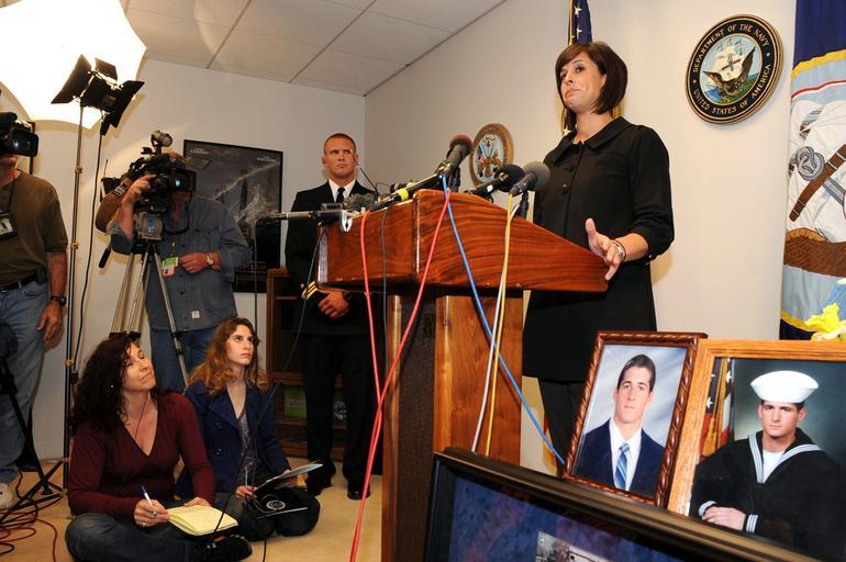 | Keywords: Michael A. Monsoor's sister Sara Monsoor speaks to the media.jpg 080403-N-5366K-007 LOS ANGELES April 3 2008 Sara Monsoor speaks to the media about her brother Master-At-Arms 2nd Class SEAL Michael A Monsoor who will be posthumously awarded the Medal of Honor during a White House ceremony April 8 Monsoor's family will accept the award for his actions during combat operations in Iraq when he threw himself onto a grenade shielding three other SEAls and three Iraqi Army soldiers http //www navy mil/management/photodb/photos/080403-N-5366K-007 jpg from http //www navy mil/view_image asp id 57214 2008-04-03 U S Navy Photo by Mass Communication Specialist 3rd Class Michelle L Kapica Released PD-USGov-Military-Navy Michael A Monsoor |