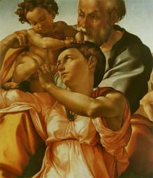 | Keywords: Michel-Ange - Tondo Doni.jpg Doni Tondo Tondo Doni oil tempera panel diameter 120 cm diamètre 120 cm Florence Florence Uffizi Gallery Galerie des Offices Detail Détail Livre de Pierluigi De Vecchi Raphaël traduit de l'italien par Odile Menegaux et Paul Alexandre Paris Citadelles Mazenod 2002 Collection Les Phares 380 p ISBN 2850881139 1504-1505 Michelangelo Buonarroti Other versions <gallery> File Michelangelo_Buonarroti_-_Tondo_Doni_-_Google_Art_Project jpg Complete work File Michelangelo Buonarroti 047 jpg Different tones </gallery> Creator Michelangelo Buonarroti PD-old-100 Tondo Doni Taken with Panasonic Lumix DMC-TZ2 Details of paintings by Michelangelo |
