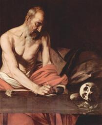 | Keywords: Michelangelo Caravaggio 056.jpg Artwork de Hl Hieronymus oil canvas cm 117 157 de Valletta Malta de Kathedrale San Giovanni de Urspr Altargemälde für Santa Lucia alla Marina in Valletta Auftraggeber Fra Ippolito Malaspina Prior des Malteserordens Wappen im Bild The Yorck Project 10 000 Meisterwerke der Malerei DVD-ROM 2002 ISBN 3936122202 Distributed by DIRECTMEDIA Publishing GmbH 1608 Creator Caravaggio http //mail wikipedia org/pipermail/wikide-l/2005-April/012195 html Other versions <gallery>File CaravaggioJeromeValletta jpg</gallery> PD-old-100 PD-Art-YorckProject Saint Jerome in his study by Caravaggio Valletta Details of paintings by Caravaggio |
