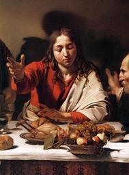 | Keywords: Michelangelo Merisi da Caravaggio - Supper at Emmaus (detail) - WGA04143.jpg Artwork Creator Caravaggio Supper at Emmaus between 1601 1602 Oil on canvas Institution National Gallery London object history credit line accession number WGA link 4143 http //www wga hu/art/c/caravagg/06/35emmau1 jpg http //www wga hu/html/c/caravagg/06/35emmau1 html PD-old-100 painting religious Italian 1551-1600 Supper at Emmaus by Caravaggio London Details of paintings by Caravaggio WGA form painting WGA type religious WGA School Italian WGA time period 1551-1600 |