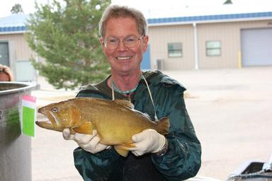 | Keywords: #fishconservation fishconservation national fish hatchery nationalfishhatchery usfws u.s. fish and wildlife service usfishandwildlifeservice fish and aquatic conservation fishandaquaticconservation mora national fish hatchery southwest region people Mora National Fish Hatchery has had some great volunteers in 2016 to help with Gila Trout spawning. One of their favorite pics is of Mick Brown, Trout Unlimited Volunteer, holding a 4.99 pound Gila trout female broodstock fish. This fish would easily smash the current World Record Gila trout caught on rod and reel by a half a pound! After spawning, "Mick's fish" is recovering in the Whiskey Creek isolation system and will be released for the Lake Roberts Kids Fishing Derby on June 4th, 2016, in Silver City, New Mexico. Which means, yes, some lucky New Mexico youth could potentially catch the next World Record Gila trout at that Derby!! Nathan Wiese Project Leader Mora National Fish Hatchery, www.fws.gov/Southwest/fisheries/mora/index.html PO Box 689 Mora, NM 87732 Mora National Fish Hatchery has had some great volunteers in 2016 to help with Gila Trout spawning. One of their favorite pics is of Mick Brown, Trout Unlimited Volunteer, holding a 4.99 pound Gila trout female broodstock fish. This fish would easily smash the current World Record Gila trout caught on rod and reel by a half a pound! After spawning, "Mick's fish" is recovering in the Whiskey Creek isolation system and will be released for the Lake Roberts Kids Fishing Derby on June 4th, 2016, in Silver City, New Mexico. Which means, yes, some lucky New Mexico youth could potentially catch the next World Record Gila trout at that Derby!! Nathan Wiese Project Leader Mora National Fish Hatchery, www.fws.gov/Southwest/fisheries/mora/index.html PO Box 689 Mora, NM 87732 |