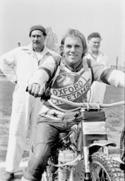 | Keywords: Mick Handley on bike.jpg en Mick Handley English speedway rider Photo Oxford Cheetahs 1977 Own Lawson Speedway 1977 Mick Handley Oxford Cheetahs riders Black and white photographic portraits of speedway racers Black and white photographs of motorcycle racing in the 1970s |