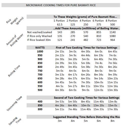 | View Original: | Microwave Rice Cooking Chart Pure Basmati.PNG (679x680) | |||