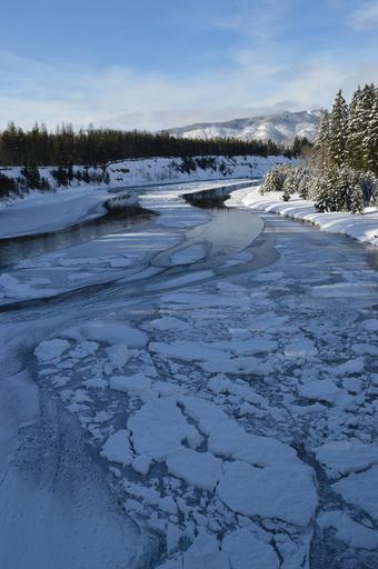 Keywords: outdoor snow landscape lake water river riverbed From the West Glacier bridge looking down stream From the West Glacier bridge looking down stream