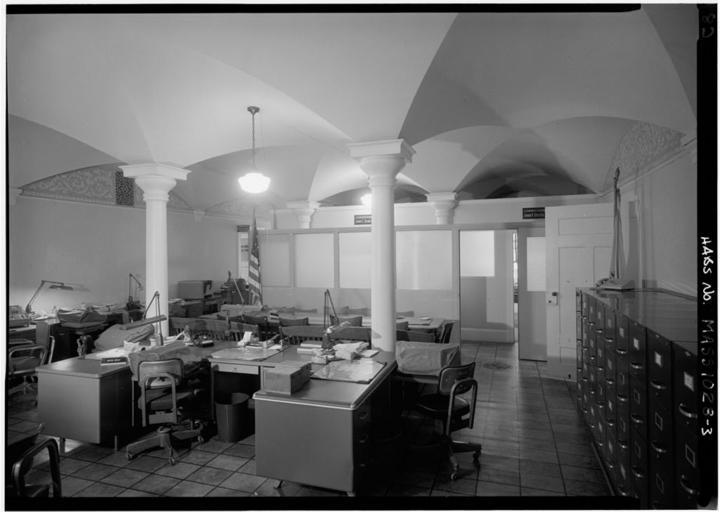 | Keywords: Middlesex County Courthouse - 080090pv.jpg Middlesex County Courthouse at Third Otis Thorndike Streets Cambridge Massachusetts USA Original architect Charles Bulfinch with modifications by Ammi Young From the HABS record The Middlesex County Superior Court Building is the oldest public building in Cambridge The present structure built 1848 incorporated an older structure built 1814 Noted architects were involved in both structures -- Charles Bulfinch in 1814 and Ammi B Young who was later Supervising Architect of the Treasury Department in 1848 Historic American Buildings Survey HABS Library of Congress Prints and Photograph Division Washington D C 20540 USA Survey number HABS MA-1028 http //hdl loc gov/loc pnp/hhh ma0244 1967-10 George H Cushing photographer Public domain - Original work of the US Federal Government Middlesex County Courthouse Building interiors in Cambridge Massachusetts PD-USGov |