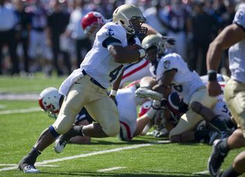 | Keywords: Midshipmen on offense at Navy at Air Force 2010-10-02 2.JPG U S Naval Academy Midshipmen Quarterback Ricky Dobbs runs the football versus the U S Air Force Academy Falcons in Colorado Springs Colo Oct 2 2010 The Falcons ended a seven year drought defeating the Midshipmen 14-6 http //www defense gov/PhotoEssays/PhotoEssaySS aspx ID 1890 2010-10-02 P01 Chad J McNeeley PD-USGov-Military-Navy <gallery> File US_Navy_101002-N-0696M-295_U S_Naval_Academy_Midshipmen_Quarterback_Ricky_Dobbs_runs_the_football_during_a_game_against_the_U S _Air_Force_Academy jpg Larger version </gallery> Files by User BrokenSphere 2010 Air Force Falcons football team 2010 Navy Midshipmen football team Ricky Dobbs in 2010 |