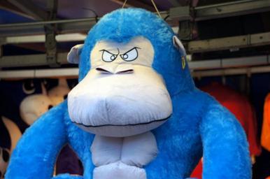 Keywords: midway game midway games midway carnival game fair amusement festival park fun entertainment fairground prizes win celebration play colorful winning luck stuffed animal gorilla blue state fair monkey grimace angry hanging prize