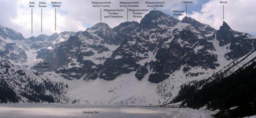 | Keywords: Mieguszowieckie szczyty panorama opis.jpg Szczyty otaczające Morskie Oko - widok od strony schroniska nad Morskim Okiem Tatry Polska Peaks surrounding Morskie Oko - view from Morskie Oko Tatra Mountains Poland own 2007-04-28 Mariusz G Morskie Oko Frozen lakes of Lesser Poland Voivodeship Winter 2006-2007 in Lesser Poland Voivodeship Mięguszowieckie Szczyty Hincovo sedlo | ||||