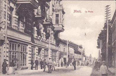 Keywords: Miensk, Franciškanskaja. Менск, Францішканская (1911).jpg енск Miensk вуліца Ф анцішканская vulica Franciškanskaja Пошта en Post Office in Miensk Целеш В інск на ста ых паштоўках енск Бела усь 1984 author 1911 PD-old-100 History of Minsk Lienina Street Minsk |