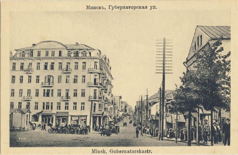 Keywords: Miensk, Vysoki Rynak-Franciškanskaja. Менск, Высокі Рынак-Францішканская (1918)..jpg енск Miensk пляц Высокі Рынак plac Vysoki Rynak у бок вуліцы Ф анцішканскай vulica Franciškanskaja Ліхадзедаў У інск Пада ожжа ў часе енск Тэхналёгія 2008 <br>Oldmensk net author 1918 PD-old-70 1918 in Minsk Freedom square Minsk Lienina Street Minsk Hotel Europe Minsk |
