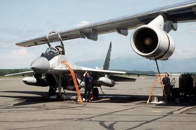 | Keywords: MiG-29 refuelling.jpg A Soviet technician works on a MiG-29A Fulcrum aircraft as it receives fuel from an IL-76MD Candid-B aircraft The aircraft has stopped at the base while en route to an air show in Canada Location ELMENDORF AIR FORCE BASE ALASKA AK UNITED STATES OF AMERICA USA DF-ST-91-11251 Air Force http //www defenseimagery mil/imagery html guid 1624645914186c33656eb2849fd5e364774b99ab http //www dodmedia osd mil/Assets/1991/Air_Force/DF-ST-91-11251 JPEG 1990 SGT Greg Suhay PD-USGOV-MILITARY-AIR FORCE PD-USGov-Military-Air Force CC0 Original upload log page en wikipedia MiG-29_refuelling jpg 2006-07-05 04 26 Victor12 2870×1900× 2313237 bytes <nowiki>A Soviet technician works on a MiG-29A Fulcrum aircraft as it receives fuel from an IL-76MD Candid-B aircraft The aircraft has stopped at the base while en route to an air show in Canada Location ELMENDORF AIR FORCE BASE ALASKA AK UNITED STATES OF </nowiki> MiG-29 in Soviet service Aircraft at Elmendorf Air Force Base Aircraft fueling CCCP-78791 aircraft Ladders Ladders with aircraft |