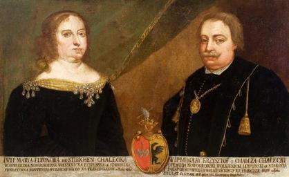 | Keywords: Mikalojus Kristupas ir Marija Eleonora Chaleckiai.jpg Portrait of MikoÅ‚aj Krzysztof Chalecki and Maria Eleonora Stibichen Portret MikoÅ‚aja Krzysztofa Chaleckiego i Marii Eleonory Stybychin ca 1646 oil canvas cm 76 120 Lithuanian Art Museum accession number object history credit line MikoÅ‚aj Krzysztof Chalecki 1590 “1653 Great Sword-bearer of Lithuania was portraited with a medallion of King WÅ‚adysÅ‚aw IV Vasa His wife Maria Eleonora Stibichen d 1660 was portraited in a French dress adorned with pearls symbolizing the virtues of a woman http //www ldm lt/Dailininko_dirbtuve/images/galerija08 jpg www ldm lt Copyright expired PD-Art <gallery>File MikoÅ‚aj Krzysztof Chalecki PNG</gallery> PD-old-100 National Museum of Lithuania MikoÅ‚aj Krzysztof Chalecki 1640s portrait paintings People with medals in art People of the Polish-Lithuanian Commonwealth |