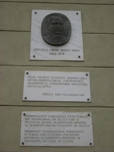 Keywords: Mikó Imre emléktáblája.JPG hu Mikó Imre emléktáblája Székely Mikó Kollégium Sepsiszentgyörgy own Grósznyó 2010 02 21 Imre Mikó Sfântu Gheorghe