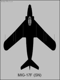 | Keywords: Mikoyan-Gurevich MiG-17F (Izdeliye SN) top-view silhouette.png en Plan-view silhouette of the Mikoyan-Gurevich MiG-17F izdeliye SN http //www vectorsite net/Avmig15_2_07 png greg goebel 2011-01-18 VectorSite images by Greg Goebel are In The Public Domain Greg Goebel MiG-17 drawings Images by Greg Goebel Mikoyan-Gurevich MiG-17F |