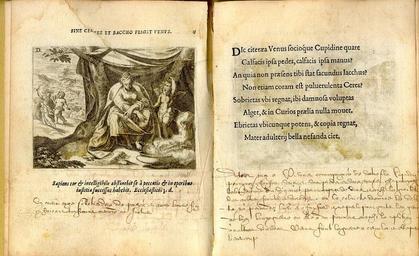 | Keywords: Mikro020.jpg en double page with Emblem from Mikrokosmos Parvus mundus Emblems engraved by Gèrard de Jode with verses by Laurentius Haechtanus Haecht Goidtsenhoven Laurens van Antwerpen de Jode 1579 This is emblem 15 Sine Cerere et Baccho friget Venus Translation of explanation Say Cytherean Venus with your Cupid Why are you are warming your hands and your feet Is it because eloquent Iacchos is not there to help you And dusty Ceres is not around either Where sobriety reigns pernicious lust freezes and does not start wars against the Curii <nowiki></nowiki>i e moderate men<nowiki></nowiki> Wherever drunkenness reigns and abundance the mother of adultery wages abominable wars de Doppelseite mit Emblem aus dem Mikrokosmos Parvus mundus Embleme graviert von Gèrard de Jode mit Versen von Laurentius Haechtanus Haecht Goidtsenhoven Laurens van Antwerpen de Jode 1579 Dies ist Emblem Nr 15 Sine Cerere et Baccho friget Venus à bersetzung Sag kythereische Venus mitsamt Cupido Warum wärmst du dir selbst die Füße wärmst dir die Hände Etwa weil dir der wortgewandte Iakchos nicht beisteht Die staubige Ceres ist auch nicht da Wo Nüchternheit herrscht da friert die schädliche Lust und fängt keine Kriege gegen die Curier <nowiki></nowiki>d h maßvolle Männer<nowiki></nowiki> an Wo immer die mächtige Trunkenheit und à berfluss herrscht da beginnt die Mutter des Ehebruchs ruchlose Kriege http //www uni-mannheim de/mateo/desbillons/mikro/jpg/mikro020 jpg Gèrard de Jode image ; Laurentius Haechtanus Haecht Goidtsenhoven Laurens van Text 1579 PD-old-100 Sine Cerere et Baccho friget Venus Mikrokosmos Parvvs Mvndvs 1579 |