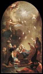 | Keywords: Mildorfer, Josef Ignaz - Pentecost - 1750s.jpg Artwork creator Josef Ignaz Mildorfer Pentecost 1750s oil canvas 55 x 33 cm Hungarian National Gallery before on an altar in the Church of Holy Spirit in Sopron Hungary Budapest http //www wga hu/html/m/mildorfe/mildorf2 html http //www gnadenquelle eu/meditation htm Other versions PD-old-100 Josef Ignaz Mildorfer Pentecost Paintings of Pentecost 18th-century religious paintings in Hungary 18th-century oil on canvas paintings in Hungary 18th-century paintings of New Testament Paintings in the Hungarian National Gallery Images from Web Gallery of Art 1750s paintings in Hungary Uploads by Mattes from external sources |