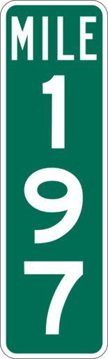Keywords: Mile Marker 197.svg PD MUTCD Rfc1394 457 1676 18 60 triple digit mile marker D10-3 Made using Viridian SVG Batcher this file was fabricated by a program 2009-03-05 Paul Robinson Rfc1394 Own work all rights released Public domain D10-3 - Distance Signs-3 Digit |
