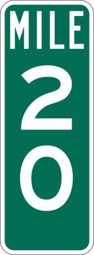 Keywords: Mile Marker 20.svg PD MUTCD Rfc1394 457 1676 18 60 double digit mile marker D10-2 Made using Viridian SVG Batcher this file was fabricated by a program 2009-03-05 Paul Robinson Rfc1394 Own work all rights released Public domain D10-2 - Distance Signs-2 Digit |