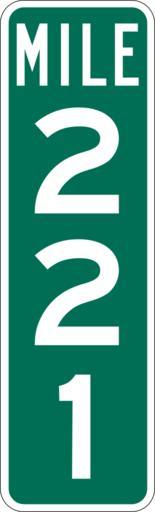 | Keywords: Mile Marker 221.svg PD MUTCD Rfc1394 457 1676 18 60 triple digit mile marker D10-3 Made using Viridian SVG Batcher this file was fabricated by a program 2009-03-05 Paul Robinson Rfc1394 Own work all rights released Public domain D10-3 - Distance Signs-3 Digit 221 number |