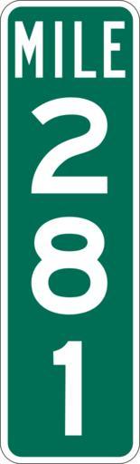 | Keywords: Mile Marker 281.svg PD MUTCD Rfc1394 457 1676 18 60 triple digit mile marker D10-3 Made using Viridian SVG Batcher this file was fabricated by a program 2009-03-05 Paul Robinson Rfc1394 Own work all rights released Public domain D10-3 - Distance Signs-3 Digit 281 number |