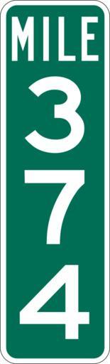 | Keywords: Mile Marker 374.svg  PD MUTCD Rfc1394 457 1676 18 60 triple digit mile marker D10-3 Made using Viridian SVG Batcher this file was fabricated by a program 2009-03-05 Paul Robinson Rfc1394 Own work all rights released Public domain D10-3 - Distance Signs-3 Digit |