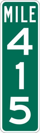 MAKE A MEME View Large Image Mile Marker 415.svg PD MUTCD Rfc1394 457 1676 18 60 triple digit mile marker D10-3 Made using Viridian SVG Batcher this file was fabricated by a program 2009-03-05 Paul Robinson Rfc1394 Own work all rights released Public domain D10-3 - ...