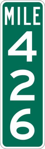 | Keywords: Mile Marker 426.svg  PD MUTCD Rfc1394 457 1676 18 60 triple digit mile marker D10-3 Made using Viridian SVG Batcher this file was fabricated by a program 2009-03-05 Paul Robinson Rfc1394 Own work all rights released Public domain D10-3 - Distance Signs-3 Digit |