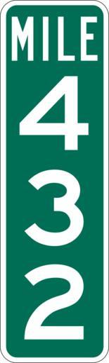 | Keywords: Mile Marker 432.svg PD MUTCD Rfc1394 457 1676 18 60 triple digit mile marker D10-3 Made using Viridian SVG Batcher this file was fabricated by a program 2009-03-05 Paul Robinson Rfc1394 Own work all rights released Public domain D10-3 - Distance Signs-3 Digit |