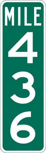 | Keywords: Mile Marker 436.svg  PD MUTCD Rfc1394 457 1676 18 60 triple digit mile marker D10-3 Made using Viridian SVG Batcher this file was fabricated by a program 2009-03-05 Paul Robinson Rfc1394 Own work all rights released Public domain D10-3 - Distance Signs-3 Digit |