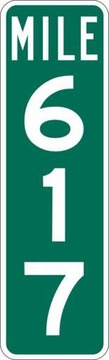 | Keywords: Mile Marker 617.svg PD MUTCD Rfc1394 457 1676 18 60 triple digit mile marker D10-3 Made using Viridian SVG Batcher this file was fabricated by a program 2009-03-05 Paul Robinson Rfc1394 Own work all rights released Public domain D10-3 - Distance Signs-3 Digit 617 number |