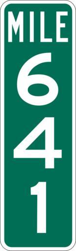 | Keywords: Mile Marker 641.svg PD MUTCD Rfc1394 457 1676 18 60 triple digit mile marker D10-3 Made using Viridian SVG Batcher this file was fabricated by a program 2009-03-05 Paul Robinson Rfc1394 Own work all rights released Public domain D10-3 - Distance Signs-3 Digit 641 number |