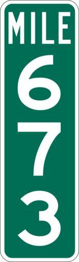 | Keywords: Mile Marker 673.svg PD MUTCD Rfc1394 457 1676 18 60 triple digit mile marker D10-3 Made using Viridian SVG Batcher this file was fabricated by a program 2009-03-05 Paul Robinson Rfc1394 Own work all rights released Public domain D10-3 - Distance Signs-3 Digit 673 number |