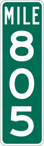 | Keywords: Mile Marker 805.svg PD MUTCD Rfc1394 457 1676 18 60 triple digit mile marker D10-3 Made using Viridian SVG Batcher this file was fabricated by a program 2009-03-05 Paul Robinson Rfc1394 Own work all rights released Public domain D10-3 - Distance Signs-3 Digit |