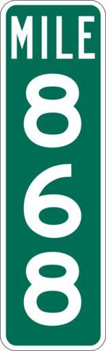 | Keywords: Mile Marker 868.svg  PD MUTCD Rfc1394 457 1676 18 60 triple digit mile marker D10-3 Made using Viridian SVG Batcher this file was fabricated by a program 2009-03-05 Paul Robinson Rfc1394 Own work all rights released Public domain D10-3 - Distance Signs-3 Digit |
