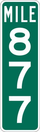 | Keywords: Mile Marker 877.svg  PD MUTCD Rfc1394 457 1676 18 60 triple digit mile marker D10-3 Made using Viridian SVG Batcher this file was fabricated by a program 2009-03-05 Paul Robinson Rfc1394 Own work all rights released Public domain D10-3 - Distance Signs-3 Digit |