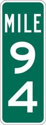 Keywords: Mile Marker 94.svg PD MUTCD Rfc1394 457 1676 18 60 double digit mile marker D10-2 Made using Viridian SVG Batcher this file was fabricated by a program 2009-03-05 Paul Robinson Rfc1394 Own work all rights released Public domain D10-2 - Distance Signs-2 Digit 94 number
