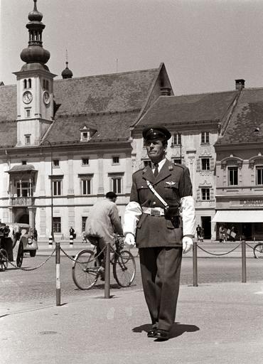 Keywords: Miličnik na Glavnem trgu v Mariboru 1957.jpg Miličnik na Glavnem trgu v Mariboru 103870 1957-05-13 author PD-Slovenia 1957 in Slovenia Historical black and white photographs of Maribor Main Square Maribor Male police officers on duty in Maribor Maribor Town Hall Cycling in Maribor |